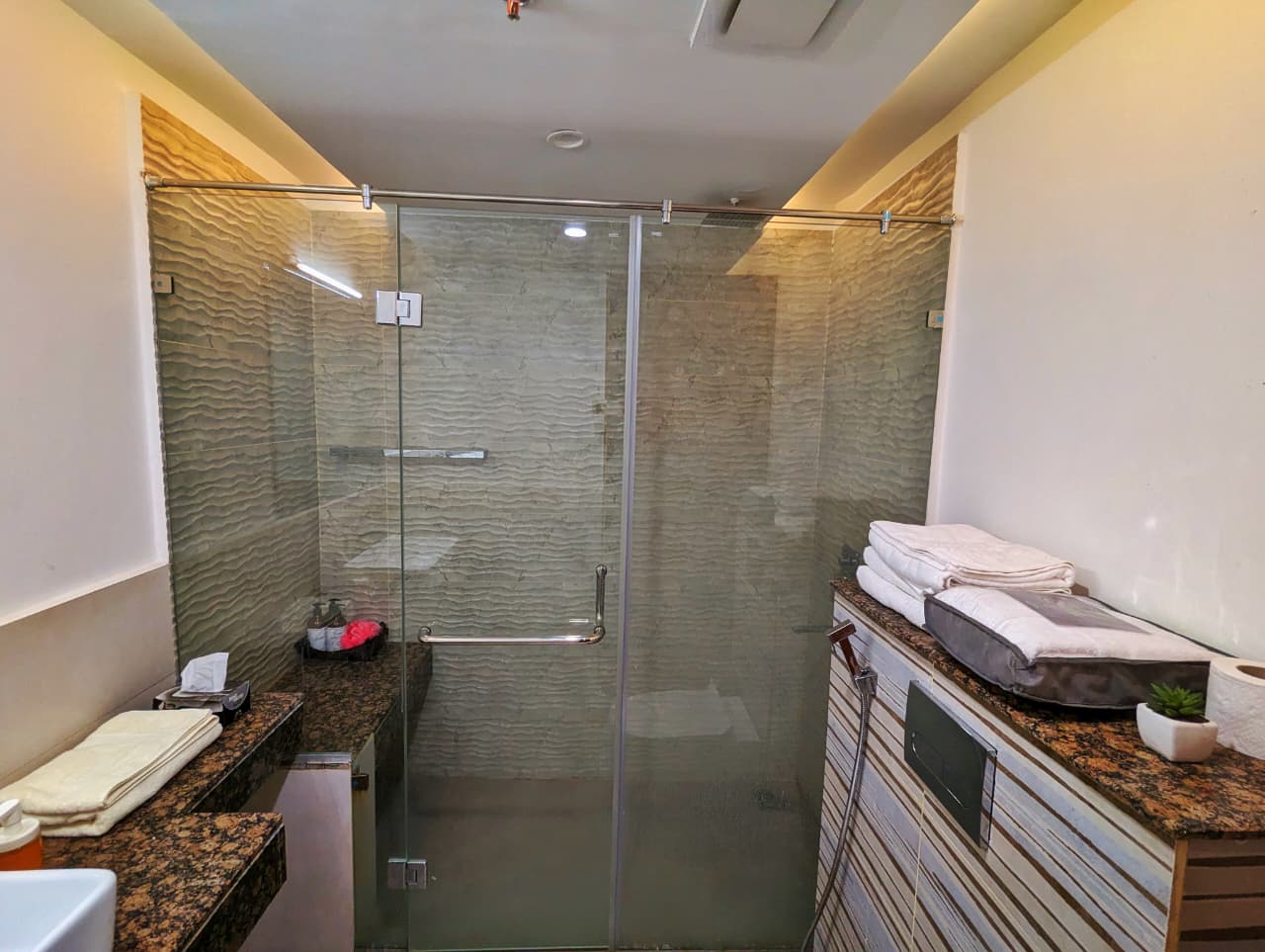 The main living area is built for high-end relaxation. We’ve paired a massive, comfortable L-shaped sofa with a large Smart TV (complete with Netflix), so you can truly relax in a space that feels private and upscale. The open layout keeps everything connected, making the suite feel much larger than a standard apartment.